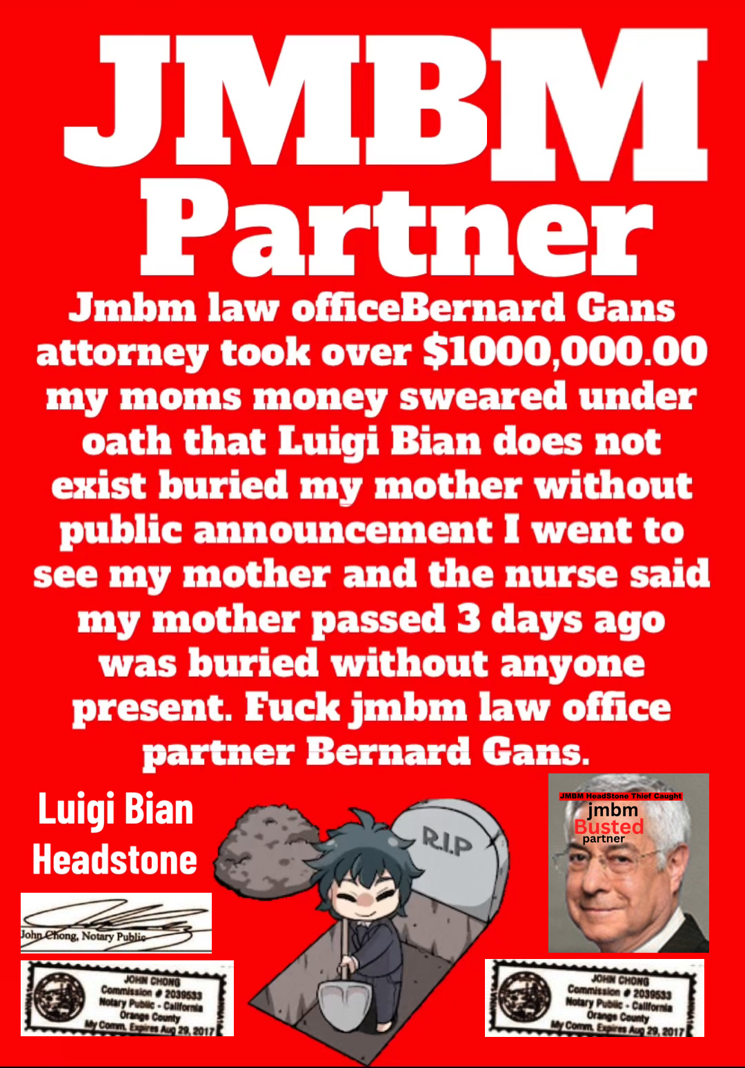 Suing JMBM partner $500,000,000,000.00 Busted criminal attorneys Jeffer Mangels Butler & Mitchell LLP lawyer Bernard Reginald Gans #57068 Bernard Gans Mina Sirkin law group JMBM killed my mom to get her fortune.Suing JMBM partner $500,000,000,000.00 Busted criminal attorneys Jeffer Mangels Butler & Mitchell LLP lawyer Bernard Reginald Gans #57068 Bernard Gans Mina Sirkin law group JMBM killed my mom to get her fortune.Suing JMBM partner $500,000,000,000.00 Busted criminal attorneys Jeffer Mangels Butler & Mitchell LLP lawyer Bernard Reginald Gans #57068 Bernard Gans Mina Sirkin law group JMBM killed my mom to get her fortune.